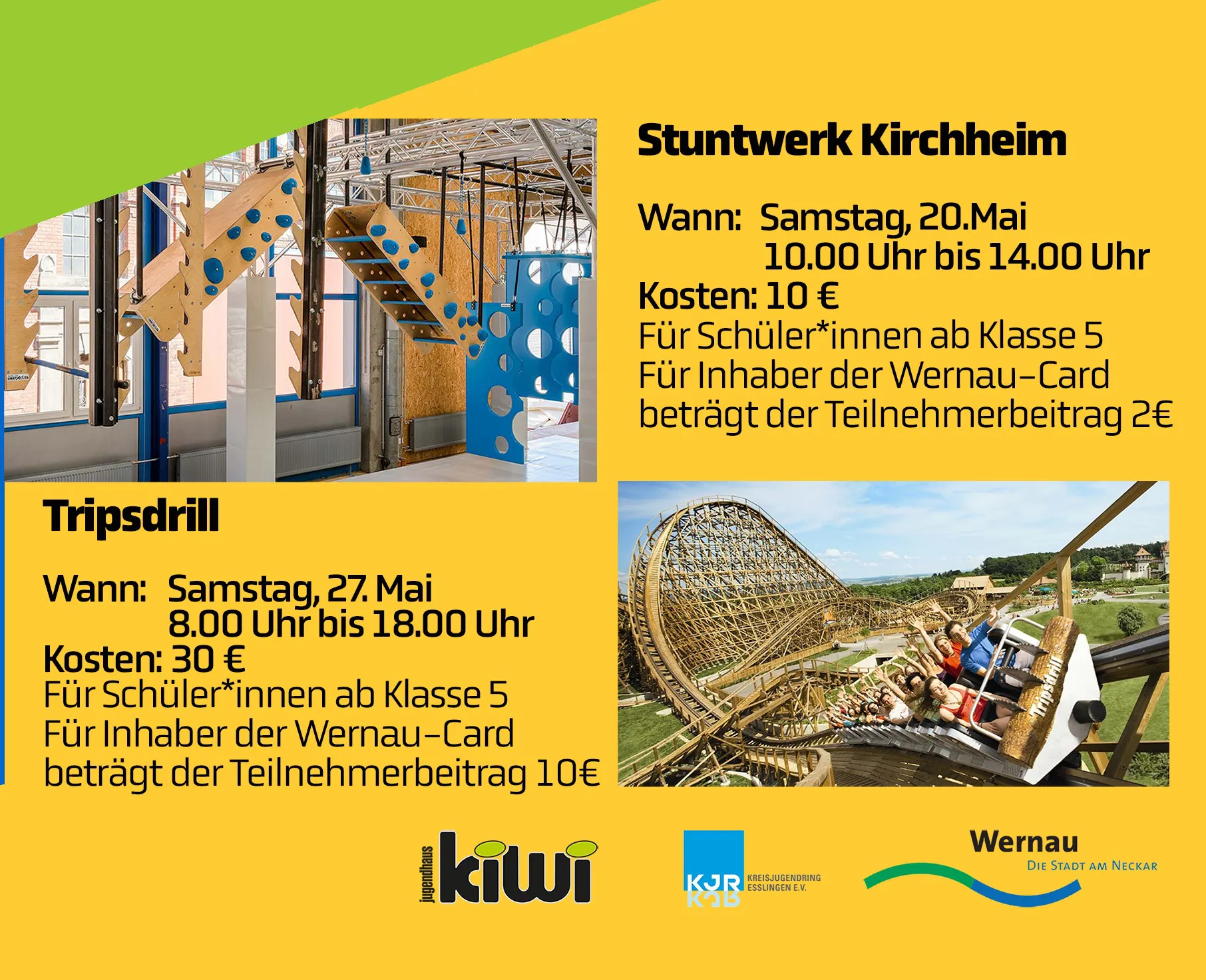 Ihr wollt bei einer oder mehreren Aktionen dabei sein? Anmelden könnt ihr euch per Mail an kia@kiwi-wernau.de, per Schul.cloud oder ihr füllt die Rückseite des Flyers aus und gibt diesen im Jugendhaus Kiwi ab.